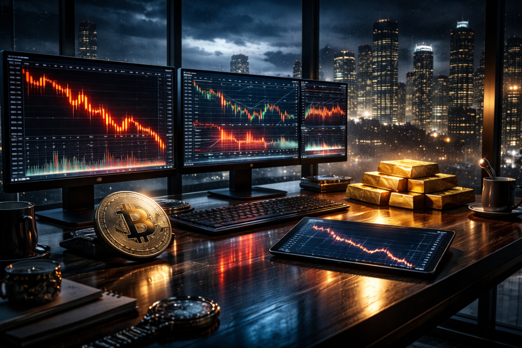 O mercado cripto diário está operando sob um pano de fundo clássico de risk-off: globalmente, houve venda em vários ativos e busca por proteção, com dólar e Treasuries ganhando tração aquele roteiro que faz cripto lembrar que não vive numa bolha.